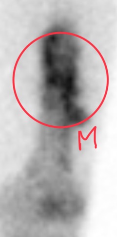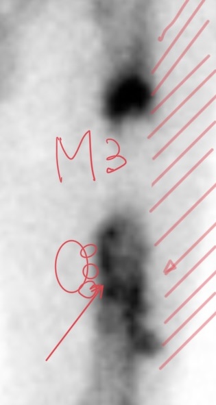 아래 그림 속 B는 뼈스캔에서 검게 나온 부분이다.