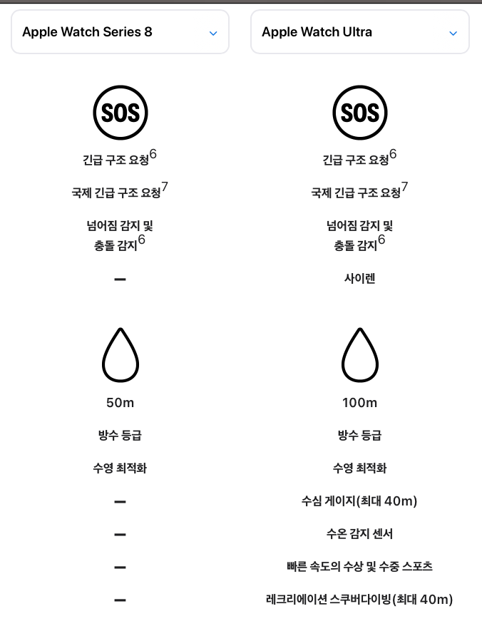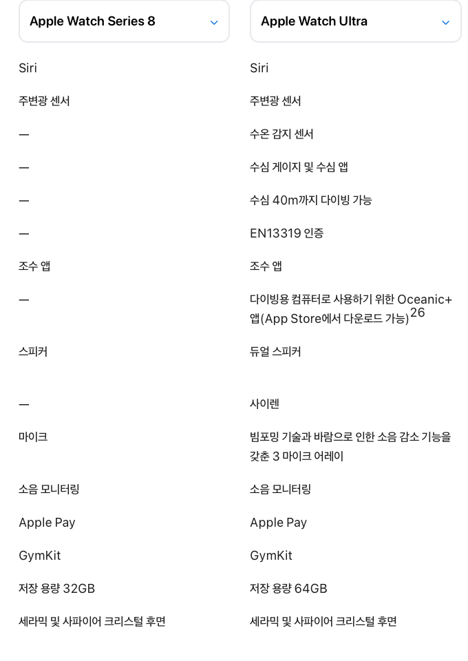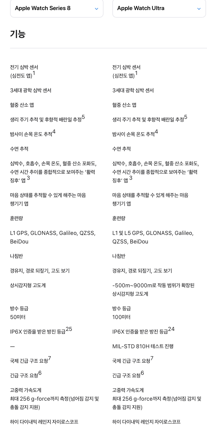 애플워치 울트라와 시리즈 8의 기능은 대동소이
